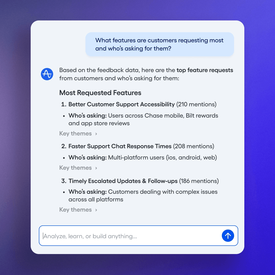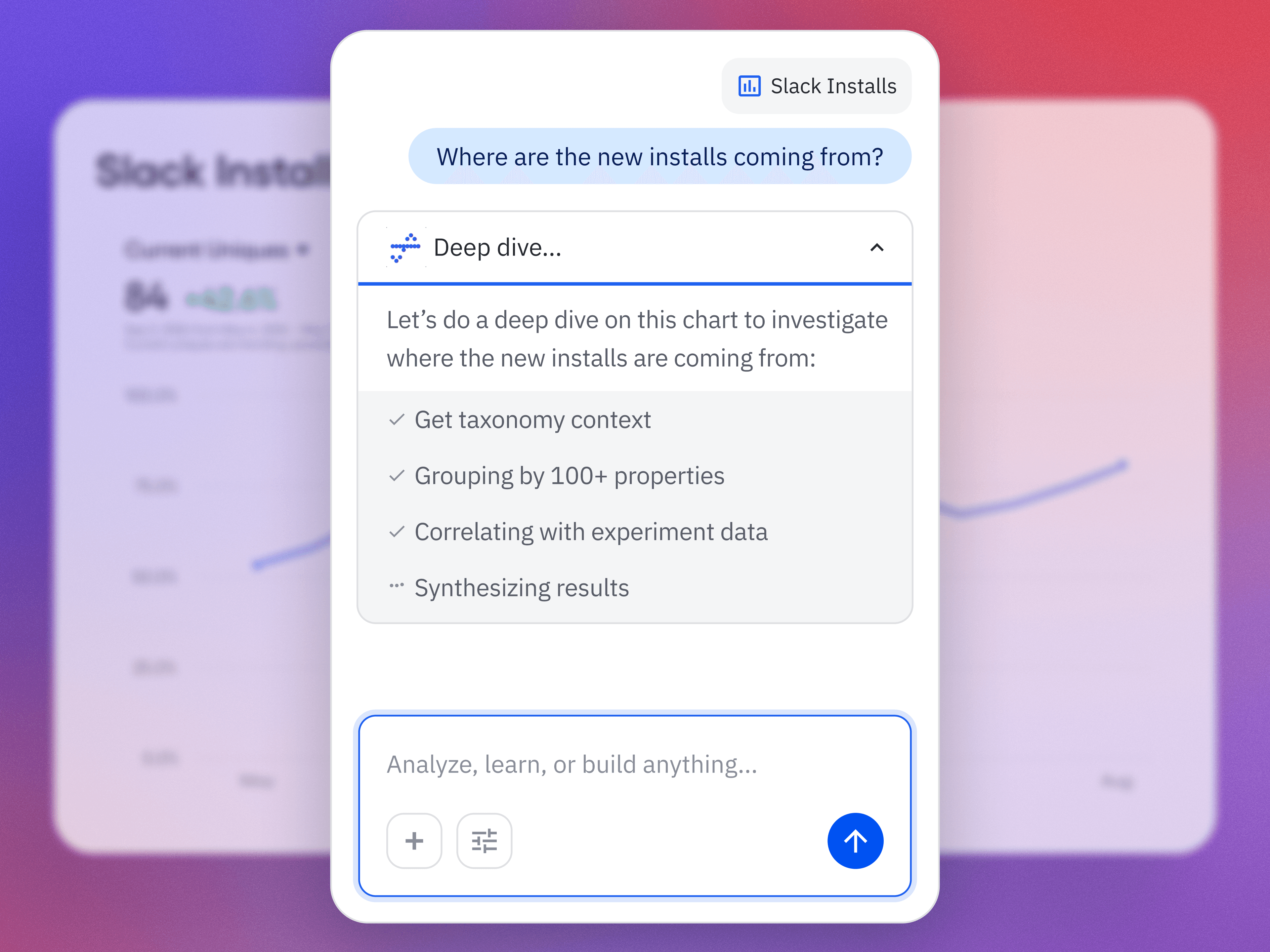 Agents analyze and learn from your unique data sets, answer follow-up questions, and share key findings. They give every line of business access to expert-level strategic thinking.