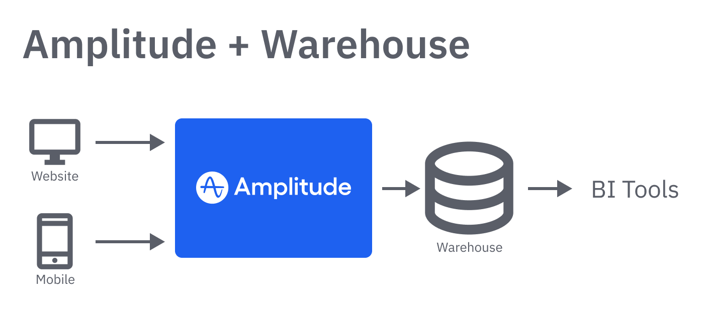 In this pattern, Amplitude is the product analytics and event collection layer, and the warehouse is the central storage and business intelligence layer.