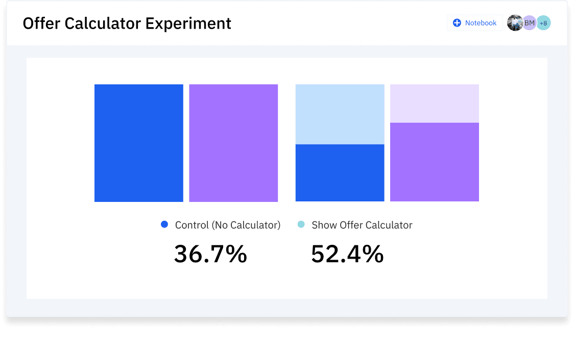 Use built-in A/B testing to measure impact, validate possibilities, and drive growth with confidence. All your product data is natively-integrated, so insights come seamlessly.