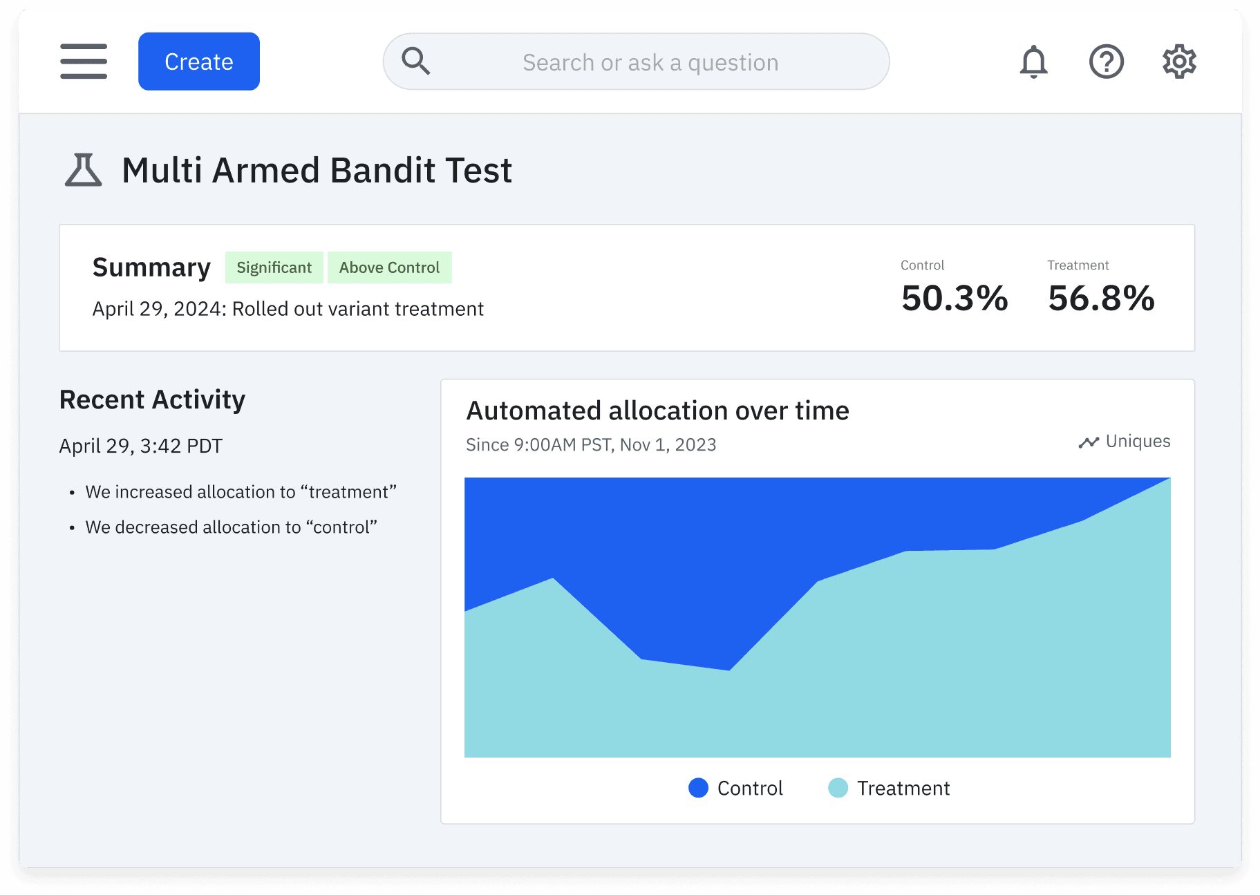 - Diseña con pruebas secuenciales, el diseño controlado de experimento pre-post (CUPED), bandidos multibrazo y mucho más.
