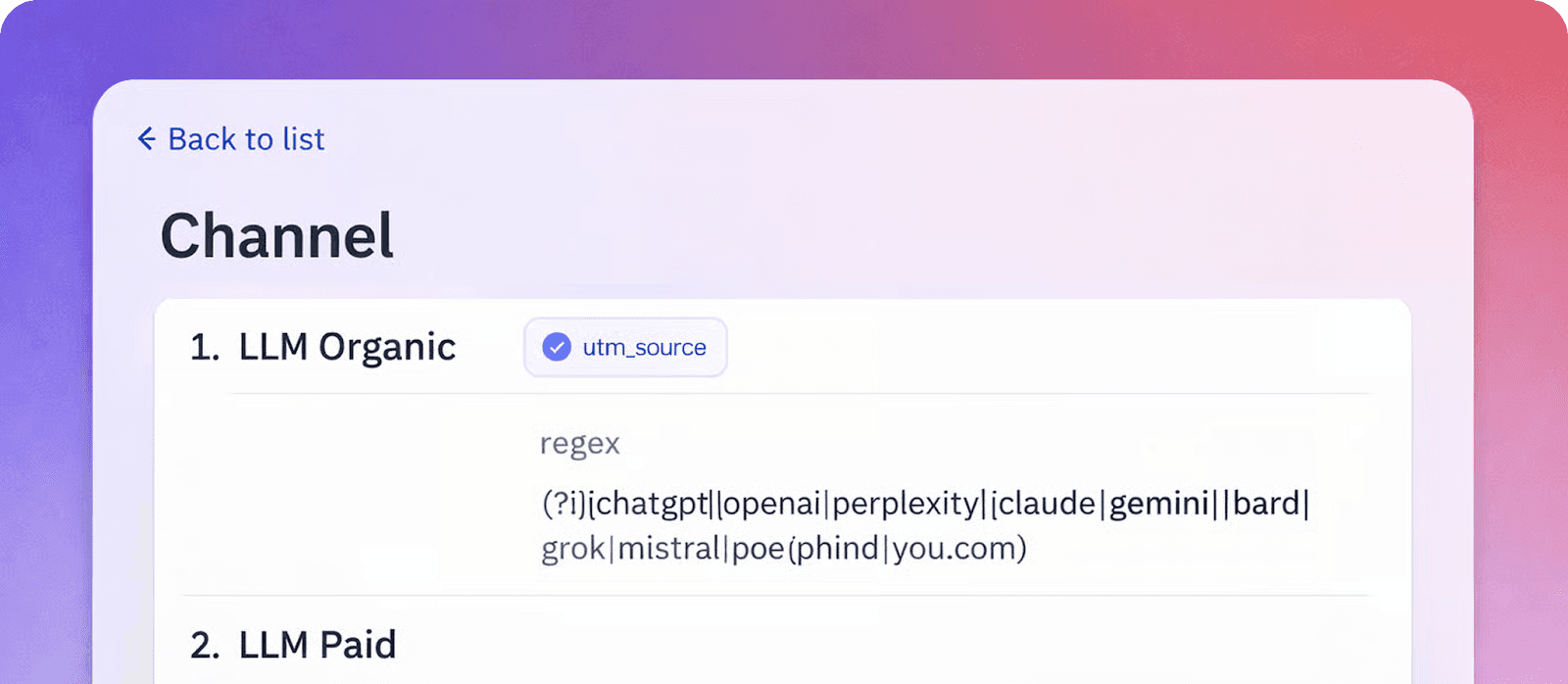 Description: Amplitude’s enhanced out-of-the-box channel classifiers automatically group traffic from sources and referrers like Paid and Organic Search, Email, Affiliates, LLM channels, and more.