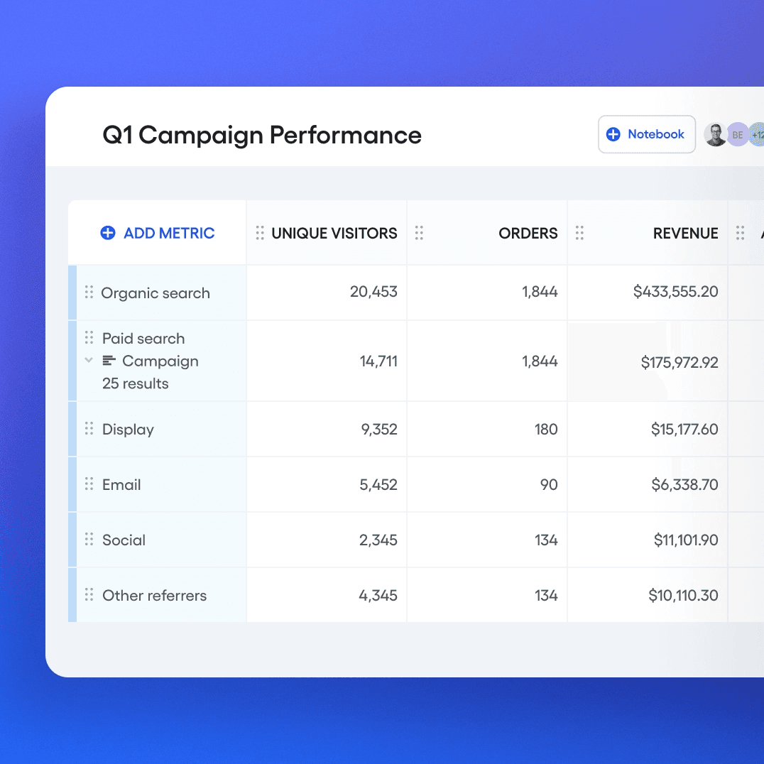 Analyze any mix of metrics, attributes, and cross-platform user behaviors to pinpoint your growth drivers, including marketing campaigns.