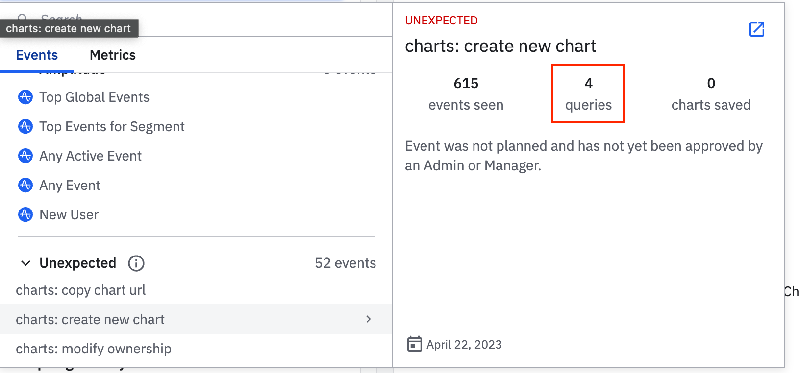 Amplitude also tallies queries for events queried in cross-project views, or when an event appears in the path in a pathfinder analysis.