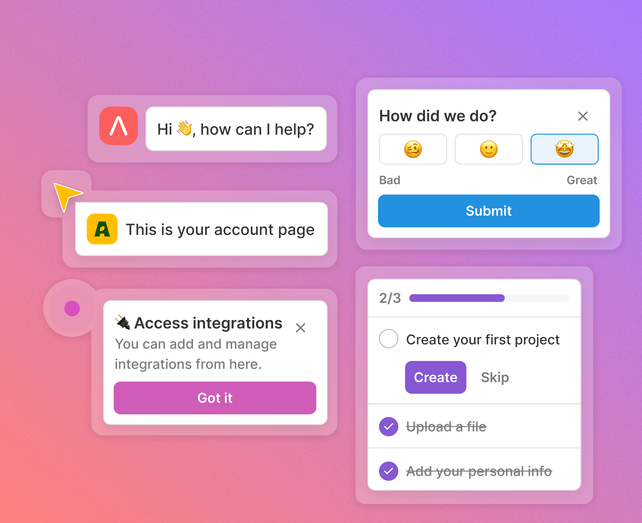 사용자가 놓친 정보를 알려주고, 피드백을 빠르게 받을 수 있도록 앱 내 커뮤니케이션을 맞춤 설정하세요.