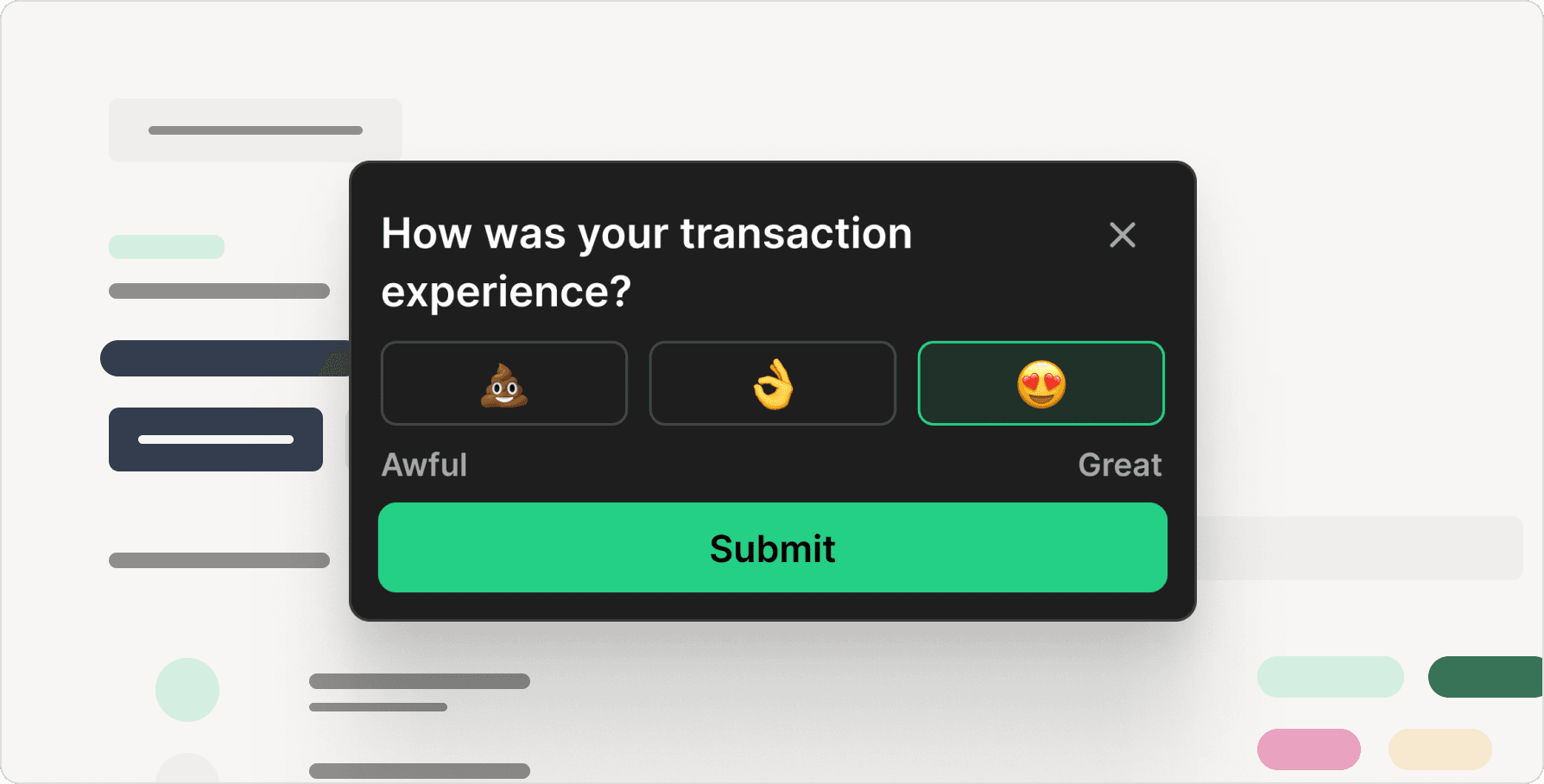 좋든 싫든, 순고객 추천 지수(NPS)는 가장 유서 깊은 고객 만족도 측정 방법입니다. 사용자 흐름을 방해하지 않는 설문조사로 반복적인 펄스를 유지하세요.